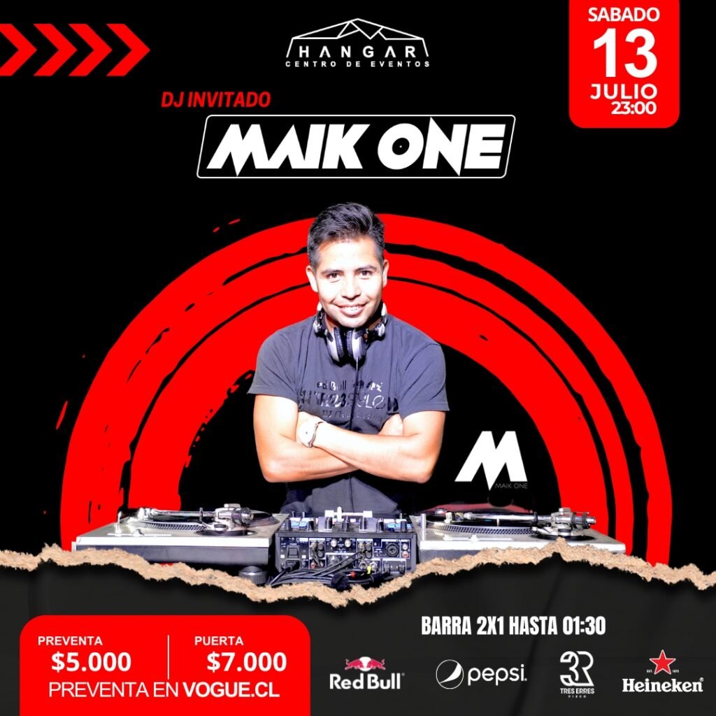 Este sábado 13 de julio, te esperamos en el Hangar Centro de Eventos con nuestro DJ invitado, ¡Maik One! @djmaikone 🎧🔥 📢 ¡Prepárate para perrear hasta abajo! 🎉 🕚 Hora: 23:00